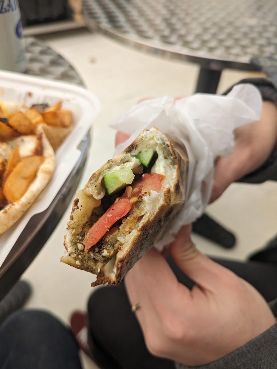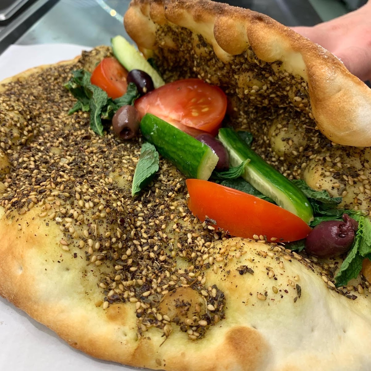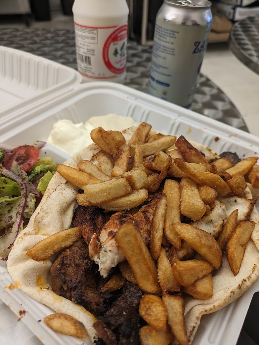 One of the main attractions here is the food itself. The Chicken Shawarma Sandwich is an absolute must-try-juicy, flavorful, and perfectly wrapped in soft pita bread. For those who love something hearty, the Mixed Grill Platter brings together tender chicken, beef kofta, and grilled vegetables, balancing smoky richness with a burst of spice. Another crowd favorite is the Fattoush Salad, vibrant with crisp lettuce, tangy dressing, and crunchy pita chips. And if you’re feeling adventurous, the Cocktail Manakish and Zaatar with Vegetables are great picks for exploring the true essence of Levantine street food.